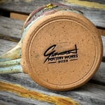 In a hole in the ground...well, you know the rest. This ornately hand-carved, hand-thrown mug will whisk you away to a faraway land of fantasy and adventure and is sure to liven up your morning cup of coffee, tea, or maybe your evening ale. With the sigil of that Disturber of the Peace, Gandalf himself, etched into the door, you can be sure that adventure is just around the corner. The mug stands just under 4 inches tall and holds 16 oz if your favorite hot or cold beverage.