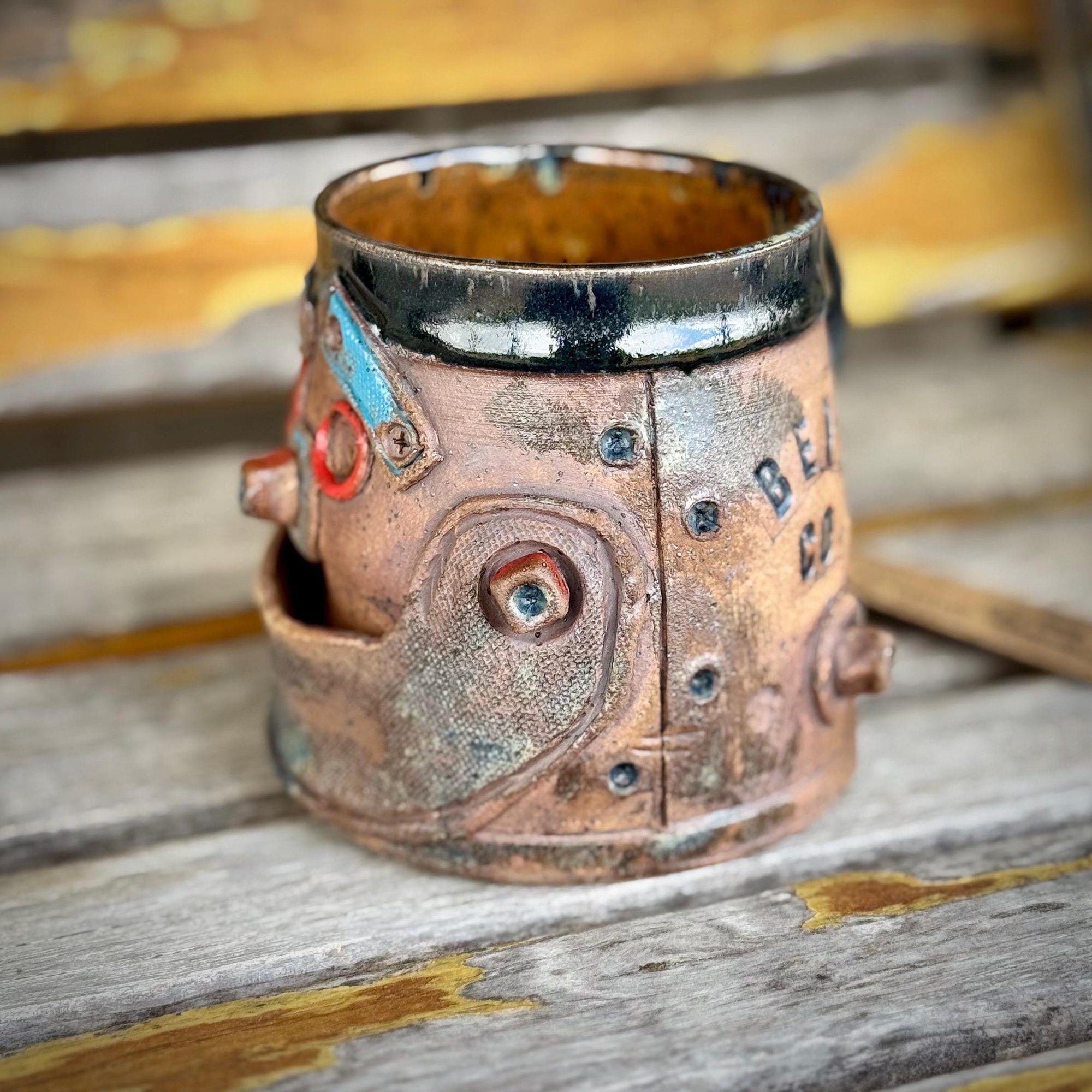 This little Robot Face Mug has just the right amount of grungey rust-looking patina to add charm and whimsy to your daily routine! Standing at 4" tall and holding over 16 oz of your favorite hot or cold beverage, this is sure to be your new favorite conversation starter!