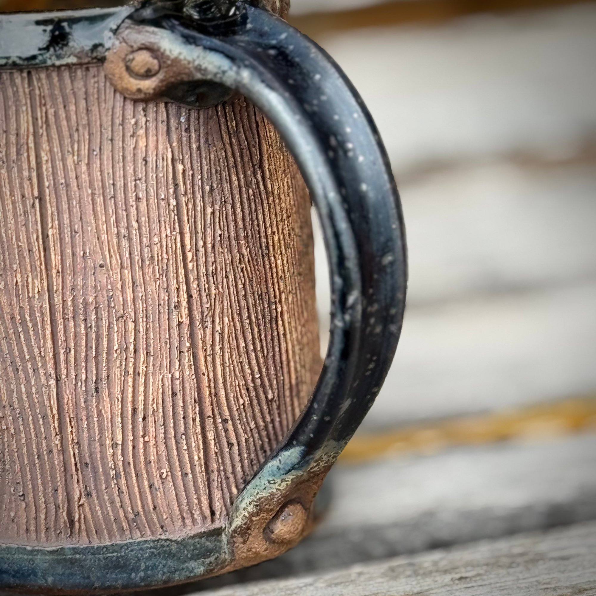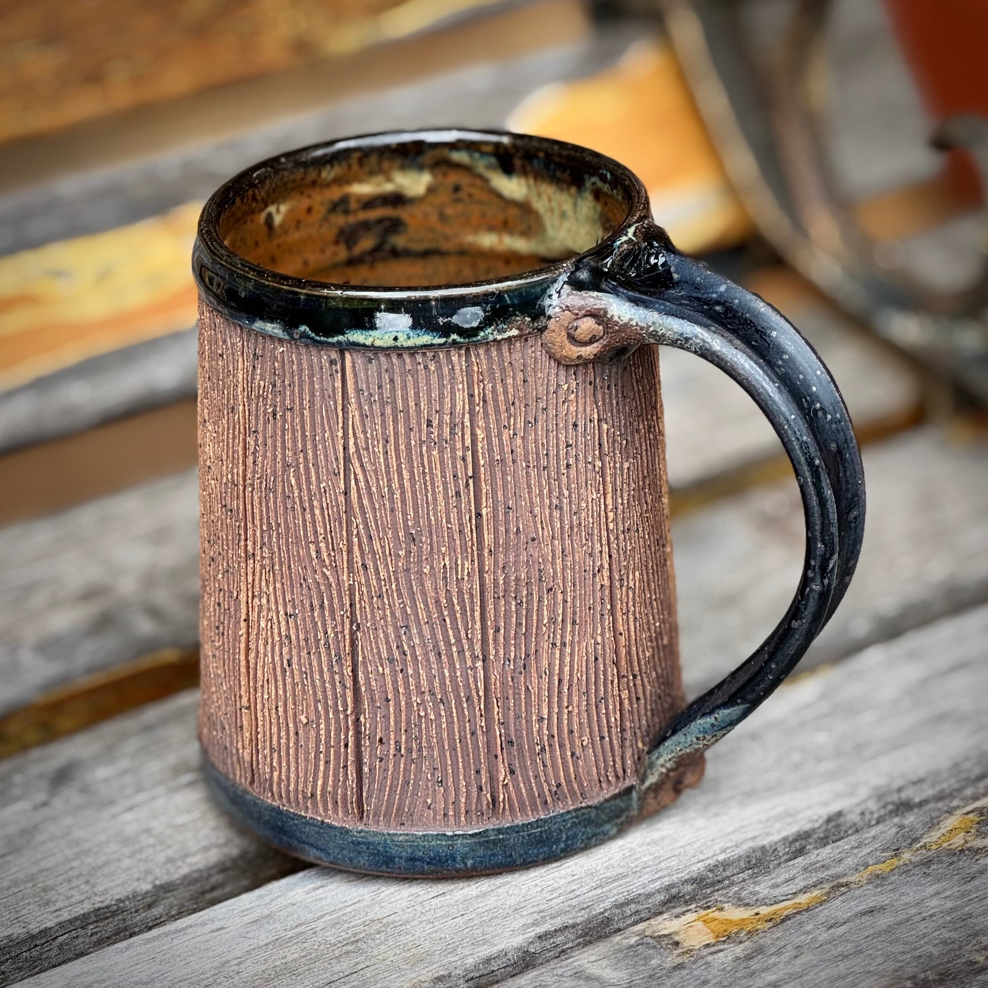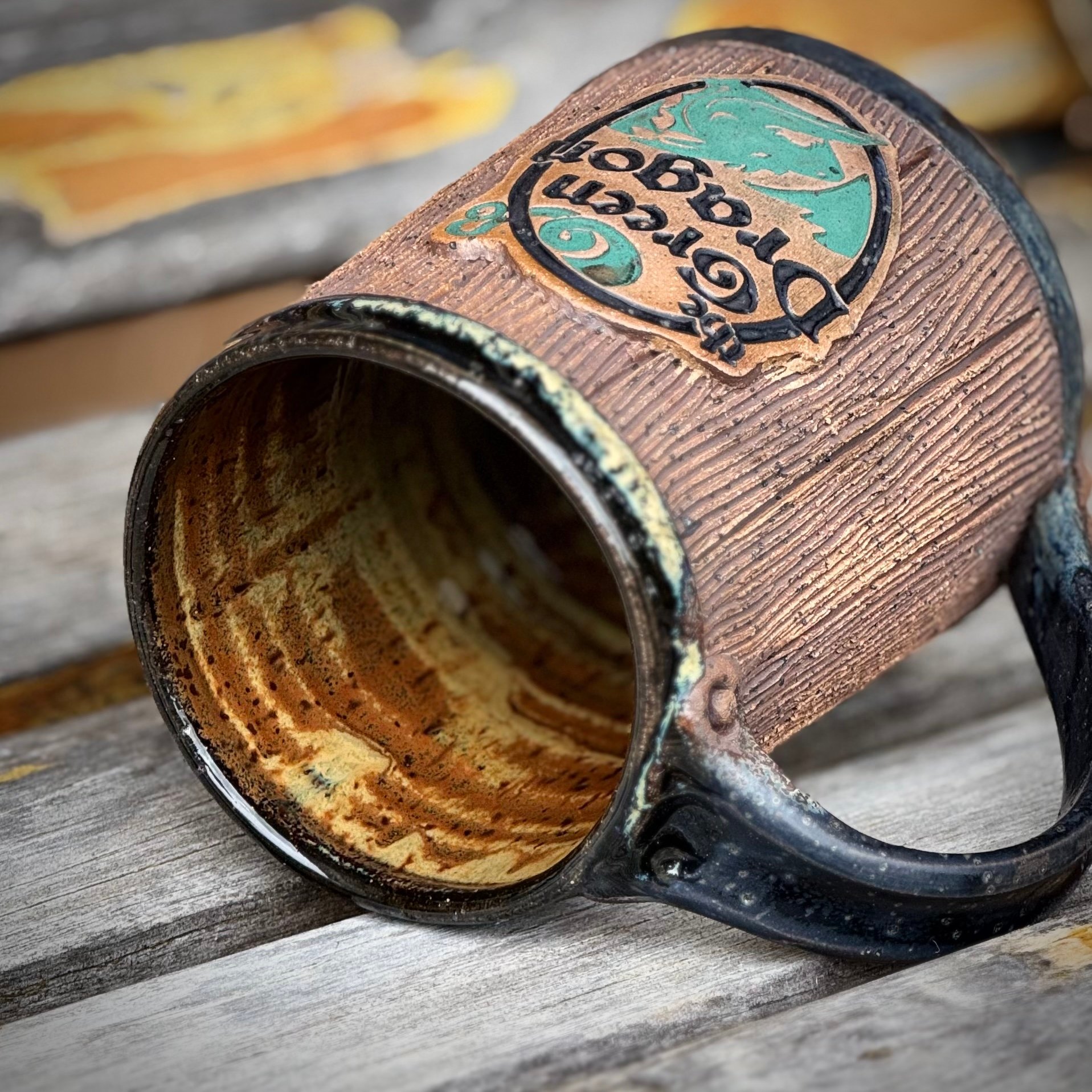 This whimsical mug celebrates everyone's favorite drinking spot in The Shire. You can almost hear the drinking songs sung by your most beloved Halflings as you hold this mug aloft in a toast to life itself. This hand thrown, hand carved mug stands around 4-1/2 inches tall and holds 16 ounces of your favorite hot or cold beverage. The handle of this mug is highlighted with a lived in 'rust' finish that lends to the look of authenticity. So lift your one of a kind mug in a toast to your favorite fantasy series!