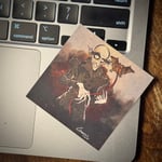 This 3"x3" vinyl sticker features a drawing by me (Brooke Gehman). This artwork was part of my annual October Drawing Challenge (Vampire was Day 6). The inspiration for this lovable bloodsucker was clearly taken from the 1922 silent classic, Nosferatu. The addition of the furry little sky puppy seemed vital.